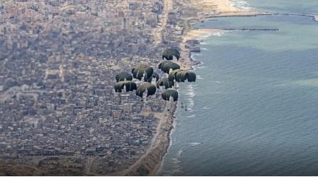 先說空運。近日,美軍中央司令部發(fā)表聲明,稱已向加沙空投1200噸援助物資,相比加沙每天約4000噸的需求量,這點東西可謂杯水車薪。