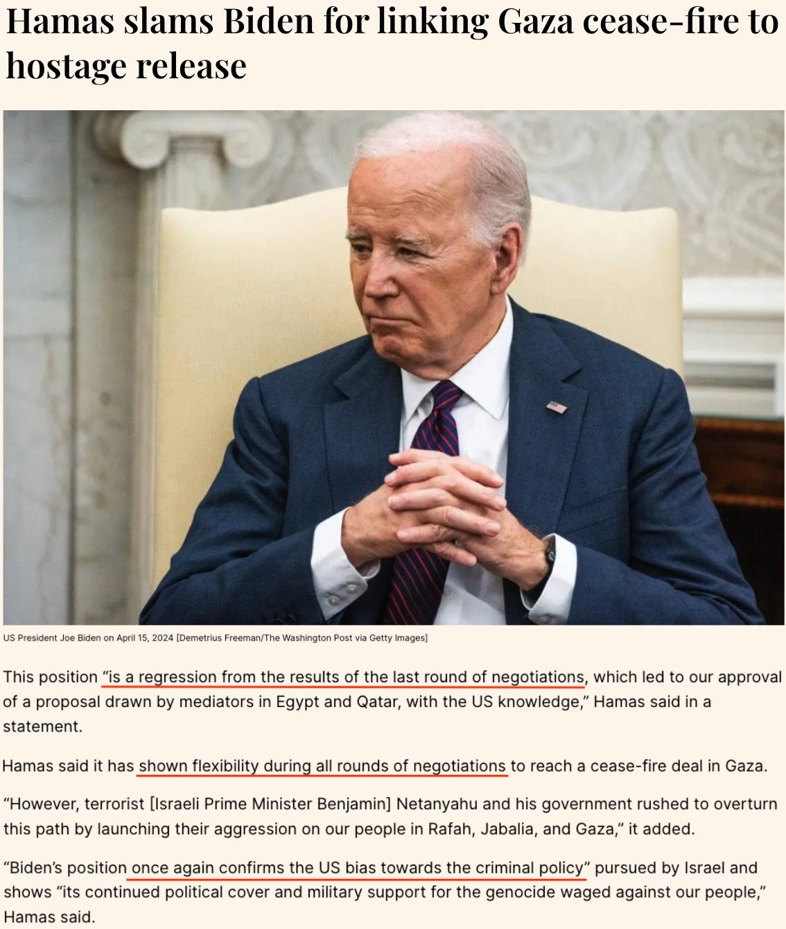 “拜登的言論令?;鹫勁羞M(jìn)程倒退,也再次證明了美國(guó)對(duì)以色列的偏袒”。