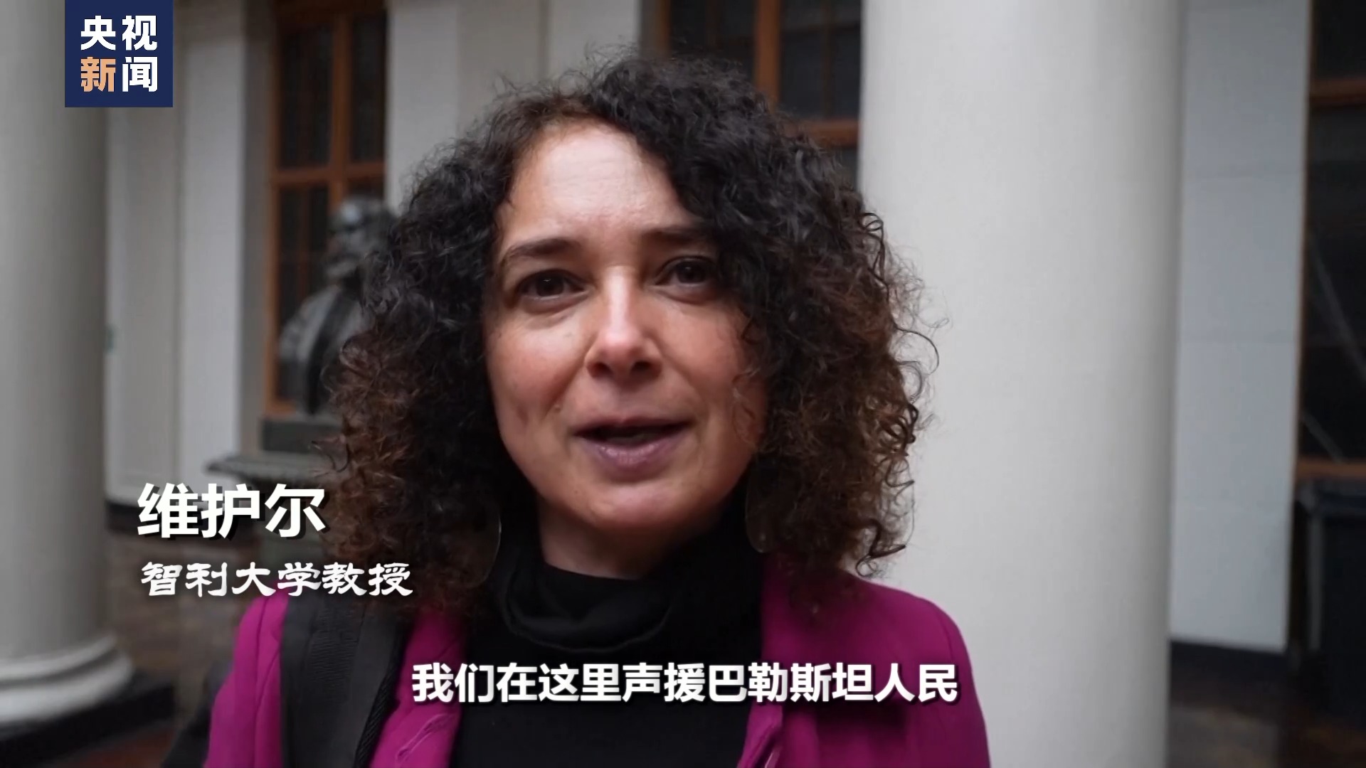 智利大學教授 維護爾:我們在這里聲援巴勒斯坦人民,并譴責針對平民,尤其是婦女兒童所進行的人權侵犯。