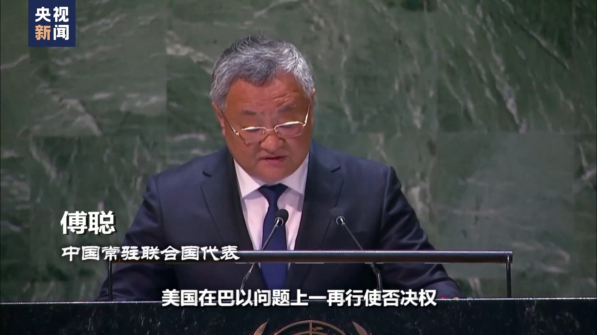 中國常駐聯(lián)合國代表 傅聰:美國在巴以問題上一再行使否決權,無理阻撓國際社會為解決巴勒斯坦長期遭受歷史不公所作出的努力,不符合一個負責任大國的擔當。