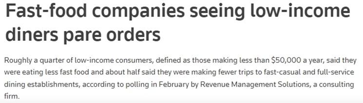 對(duì)于美國(guó)一些知名快餐連鎖店來(lái)說(shuō),低收入顧客的流失意味著銷(xiāo)售疲軟,并可能導(dǎo)致利潤(rùn)顯著下降。