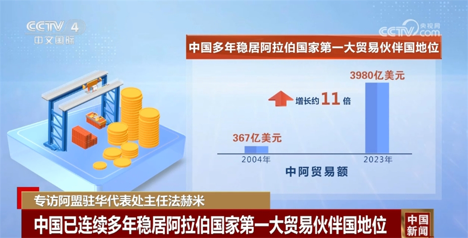 而在經(jīng)貿(mào)層面,中國已連續(xù)多年穩(wěn)居阿拉伯國家第一大貿(mào)易伙伴國地位,中阿貿(mào)易額從2004年的367億美元增至2023年的3980億美元,增長約11倍。特別值得一提的是,目前,全部22個(gè)阿拉伯國家和阿盟均同中方簽署了共建“一帶一路”合作文件。