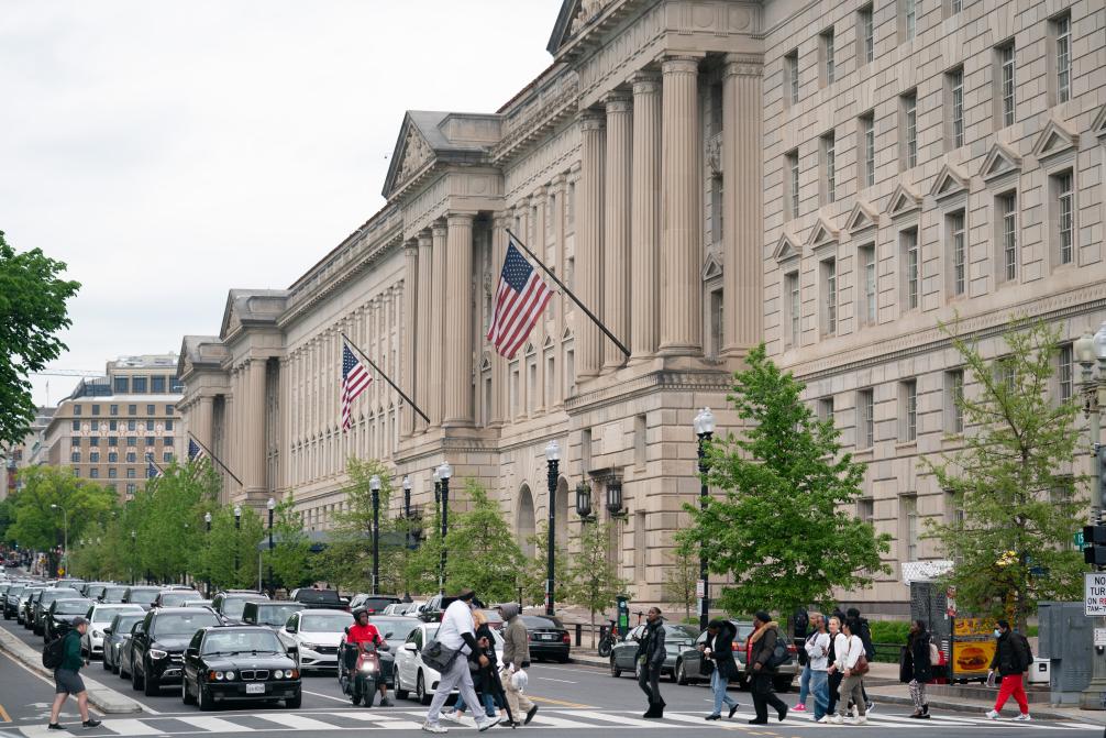 這是4月25日在美國首都華盛頓拍攝的商務部大樓。新華社記者劉杰攝