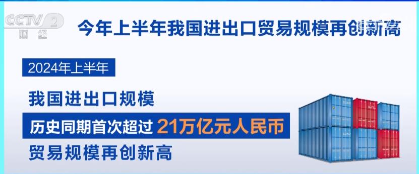 據(jù)海關(guān)統(tǒng)計(jì),上半年,我國(guó)進(jìn)出口規(guī)模歷史同期首次超過(guò)21萬(wàn)億元人民幣,貿(mào)易規(guī)模再創(chuàng)新高。在外貿(mào)取得良好成績(jī)的同時(shí),上半年我國(guó)消費(fèi)市場(chǎng)也持續(xù)升溫。今年以來(lái),我國(guó)免簽朋友圈不斷擴(kuò)大,全國(guó)出入境旅游熱度持續(xù)升高。