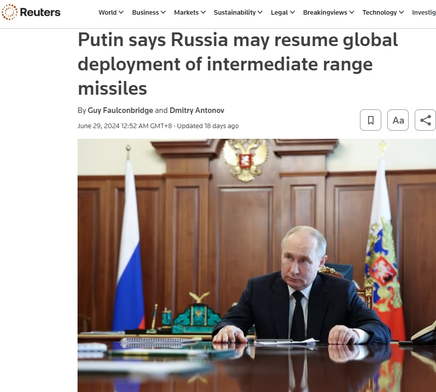 俄方不止一次發(fā)布消息說(shuō),美國(guó)的陸基中導(dǎo)系統(tǒng)已經(jīng)出現(xiàn)在歐洲的軍事訓(xùn)練中。俄總統(tǒng)普京上月底曾警告,作為對(duì)美國(guó)敵對(duì)行動(dòng)的回應(yīng),莫斯科可能會(huì)恢復(fù)陸基中導(dǎo)的生產(chǎn)和全球部署。