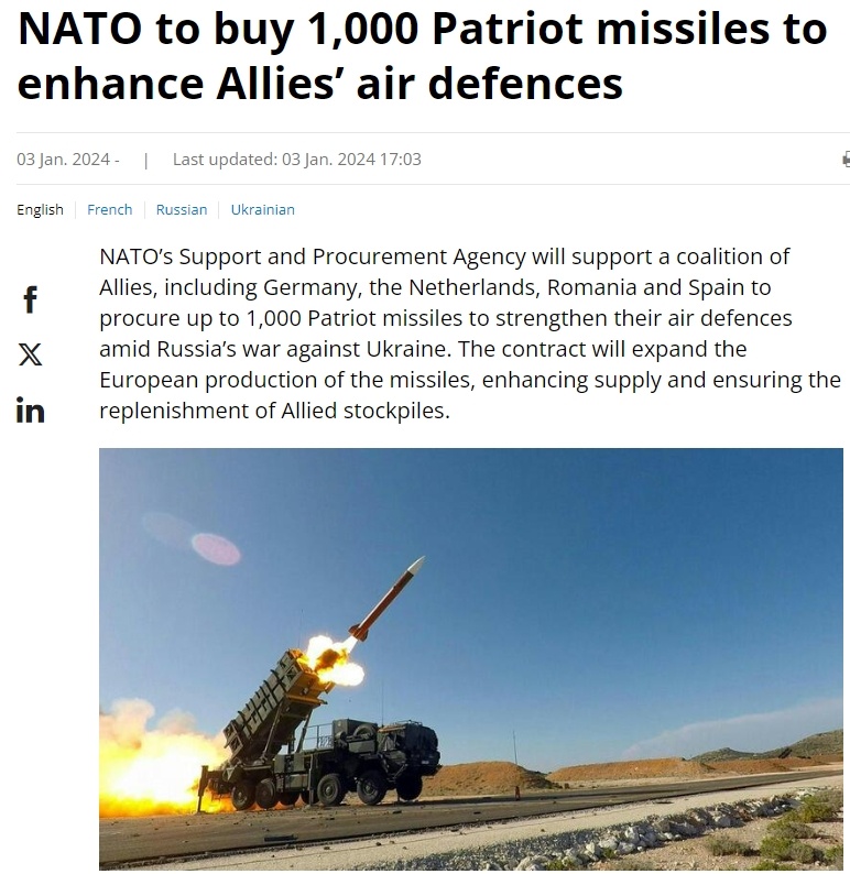 包括德國(guó)、荷蘭、羅馬尼亞和西班牙在內(nèi)的北約多個(gè)歐洲成員國(guó)今年1月決定聯(lián)合采購(gòu)總價(jià)值55億美元的1000枚“愛(ài)國(guó)者”導(dǎo)彈,以幫助加強(qiáng)烏克蘭軍隊(duì)的防空能力,并補(bǔ)充北約各援烏國(guó)家的庫(kù)存。