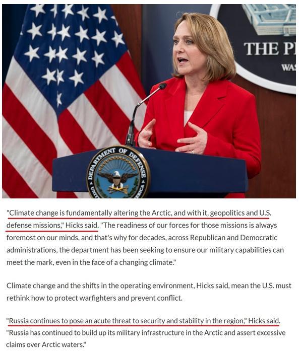 在發(fā)布這份文件時,美國國防部副部長??怂乖诤唸髸瞎宦暦Q,俄羅斯對北極地區(qū)的安全與穩(wěn)定構(gòu)成"嚴重威脅"。為此,美國必須制定戰(zhàn)略并確保美軍做好準備,以減輕在北極地區(qū)發(fā)生潛在突發(fā)事件的風險。