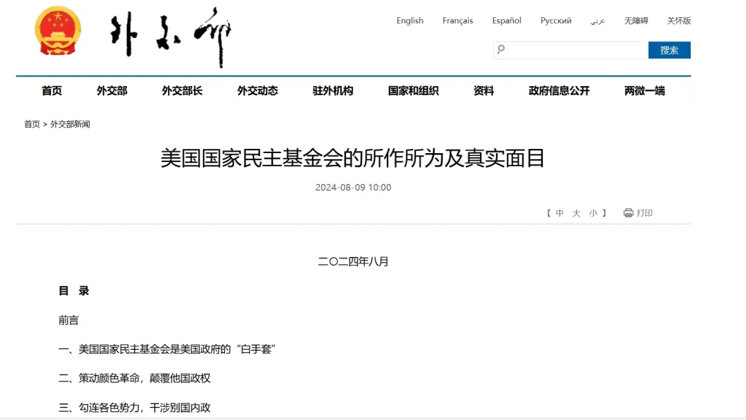 8月9日,中國外交部網(wǎng)站發(fā)布一份重磅報(bào)告:《美國國家民主基金會(huì)的所作所為及真實(shí)面目》。