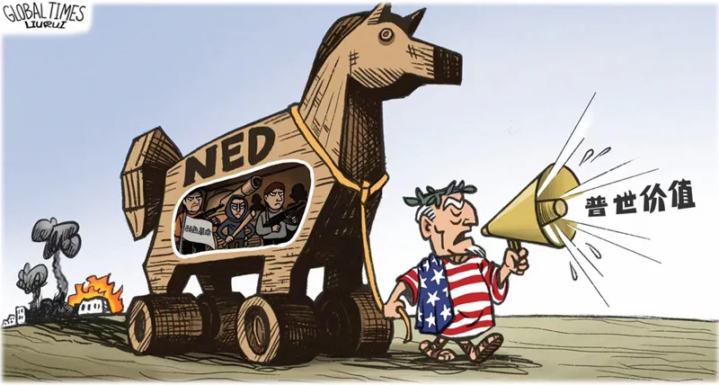 長期以來,美國將所謂普世價(jià)值工具化、武器化,煽動(dòng)分裂對抗,干涉別國內(nèi)政,造成災(zāi)難性后果。NED就是美國政府禍亂別國的“特洛伊木馬”。圖源:《環(huán)球時(shí)報(bào)》
