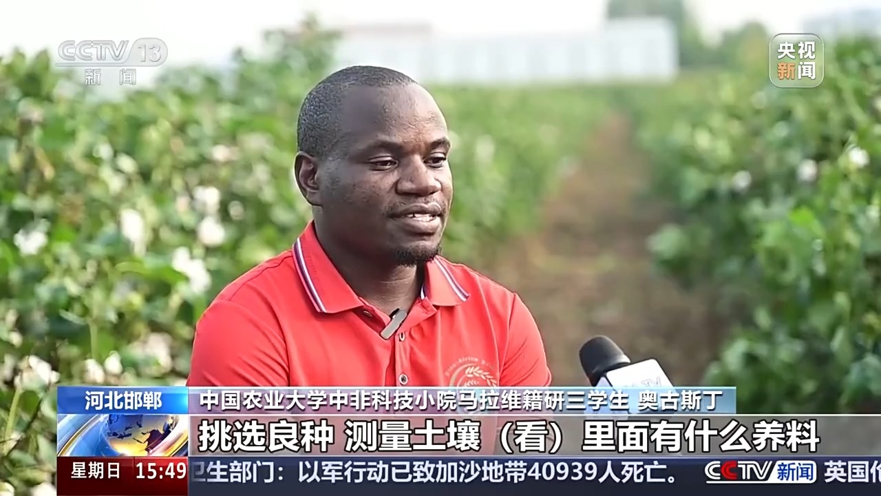 中國農(nóng)業(yè)大學(xué)中非科技小院馬拉維籍研三學(xué)生 奧古斯丁:我們教授已經(jīng)告訴我們了,你第一次去農(nóng)戶肯定不愿意聽你的,所以我們剛?cè)r就告訴他們,我們就是幫他們在田里干活的。所以他們下地,我們就跟著下地,我們一起研究農(nóng)業(yè)問題。后來,我們?nèi)〉昧宿r(nóng)戶信任。我們開始和30戶農(nóng)戶合作,現(xiàn)在有更多農(nóng)民要加入科技小院。我們今年回中國時,他們都很傷心,我告訴他們還有學(xué)生去,他們就開心了。