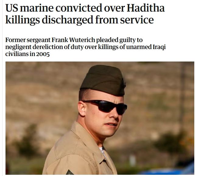 包括烏特里奇在內的多名海軍陸戰(zhàn)隊員被指控犯有謀殺罪。然而,其中三起案件最終被駁回。烏特里奇則達成認罪協議,承認一項“疏忽失職”的罪名,軍銜降職并結束服役。