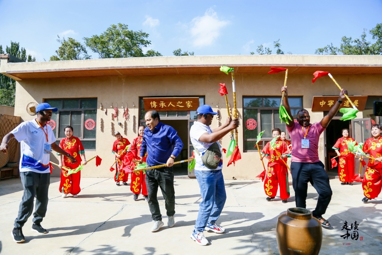 據(jù)介紹,黃羊古落有兩項(xiàng)國(guó)家級(jí)非遺稱號(hào):黃羊錢鞭和中寧蒿子面制作工藝,且黃羊錢鞭已成為村民鍛煉的一種方式。外國(guó)記者也在充滿激情的音樂(lè)中和村民一起舞動(dòng)起來(lái)。津巴布韋國(guó)家電視臺(tái)總經(jīng)理喬納森·提納沃·馬瑞瓦對(duì)環(huán)球網(wǎng)記者談?wù)撈饘?duì)于黃羊前鞭的感受,他說(shuō):“它非常完美,我的家鄉(xiāng)也有很多舞蹈,但與這里的不同。我喜歡這種形式的舞蹈,步伐統(tǒng)一,表現(xiàn)出了與眾不同的活力?!蓖瑫r(shí),喬納森強(qiáng)調(diào)了黃羊錢鞭這類非物質(zhì)文化遺產(chǎn)的重要性:“這類舞蹈保持了文化的完整性。它歷史悠久,流傳至今,也將延續(xù)到未來(lái)。它讓這種蓬勃的生命力會(huì)一直存在于孩子們的記憶里?!?/p>