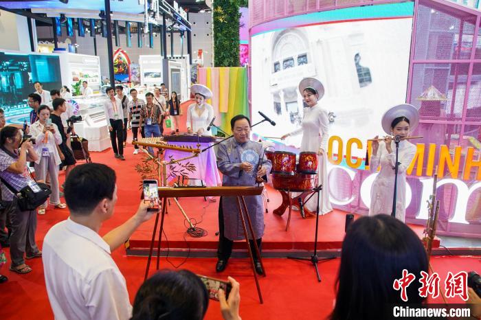 第21屆中國(guó)—東盟博覽會(huì)于9月24日至28日在廣西南寧舉行。圖為越南民族樂器表演吸引參觀者。陳冠言 攝