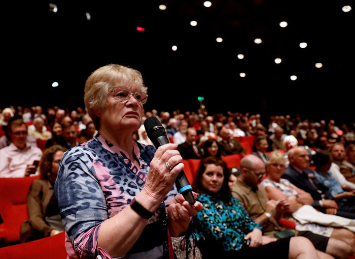 2023年8月15日,在英國倫敦,“里斯本丸”號(hào)幸存者丹尼斯·莫利之女丹妮絲·維尼在紀(jì)錄片《里斯本丸沉沒》放映活動(dòng)上與主創(chuàng)人員交流。新華社記者 李穎 攝