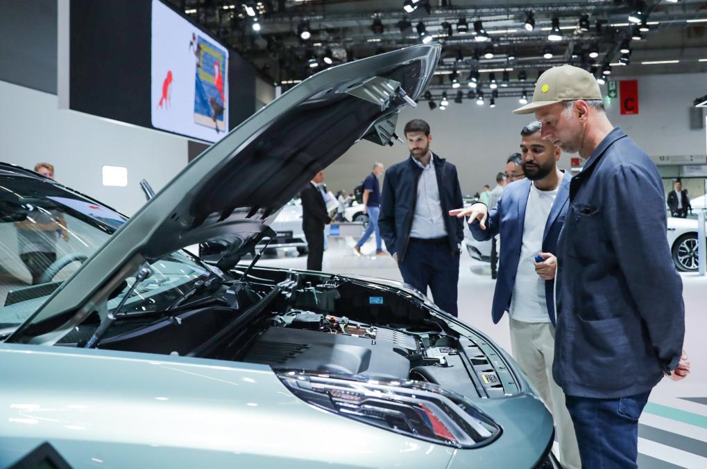 9月11日,人們在德國法蘭克福國際汽車零配件及售后服務展覽會上參觀吉利展臺。為期5天的法蘭克福國際汽車零配件及售后服務展覽會10日開幕。吉利、比亞迪等多家中國電動汽車品牌首次集體亮相,被德國媒體和業(yè)內人士視為本次展會一大看點。新華社記者張帆攝