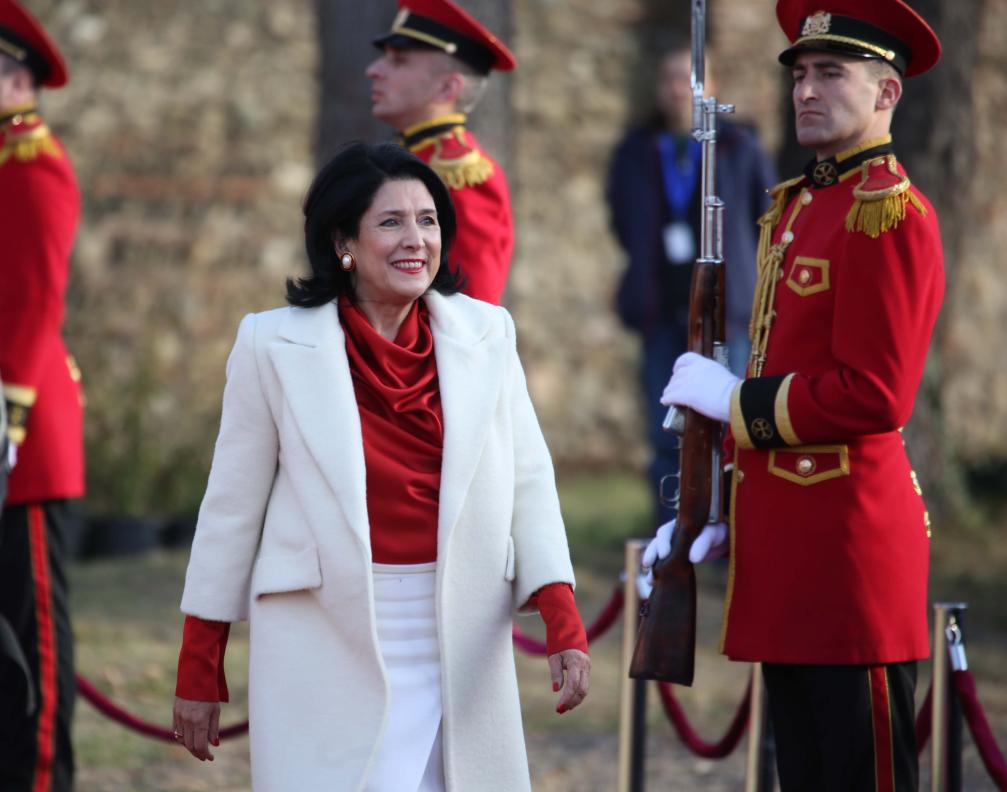 2018年12月16日,格魯吉亞當選總統(tǒng)薩洛梅·祖拉比什維利在格東部城市泰拉維宣誓就職,成為格魯吉亞獨立后首位女總統(tǒng)。新華社發(fā)(格魯吉亞總統(tǒng)府供圖)