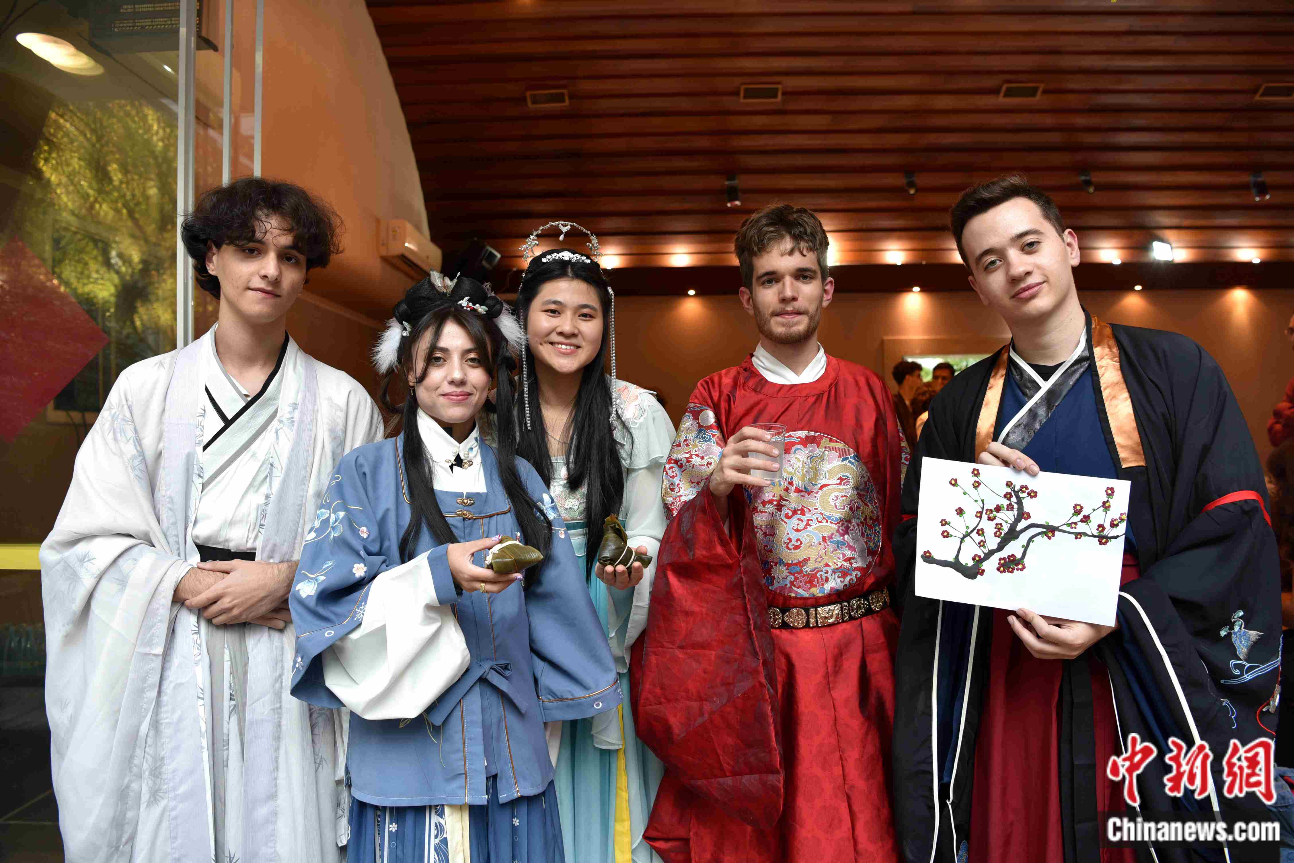 資料圖:中國(guó)駐圣保羅總領(lǐng)館舉行端午開(kāi)放日,圣保羅州立大學(xué)孔子學(xué)院40余位學(xué)子共慶端午。巴西青年學(xué)子們穿上漢服,誦讀中國(guó)古詩(shī)詞,包粽子,沉浸式體驗(yàn)中國(guó)端午習(xí)俗。 中新社記者 林春茵 攝