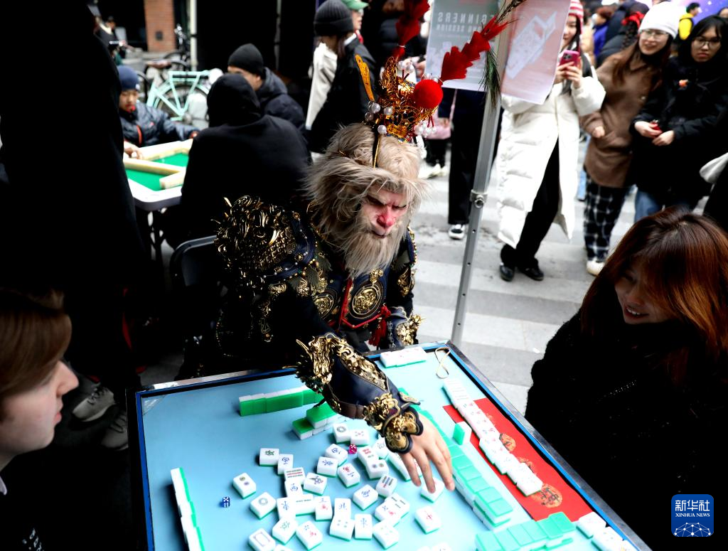 今年,倫敦卡姆登集市首次舉辦了中國春節(jié)慶典活動(dòng)。喜慶的春節(jié)燈飾高高懸掛,在微風(fēng)中輕輕搖曳;空氣中彌漫著中式點(diǎn)心的香氣,令人垂涎欲滴。人群中,偶爾可見漢服衣袂翩然掠過,許多人手中還拿著紅色的燈籠和“?!弊?。在慶典活動(dòng)上,當(dāng)?shù)厥忻裾淠荨っ谞栁值乱贿吅爸芭觥?,一邊開心地將麻將桌上的“南風(fēng)”牌收到面前。她不僅自己打得得心應(yīng)手,還不時(shí)給身邊的新手講解規(guī)則。