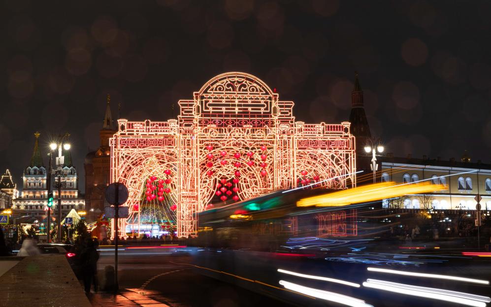 莫斯科春節(jié)慶祝活動(dòng)開(kāi)幕恰逢除夕。在開(kāi)幕式舉辦地——莫斯科市中心的馬涅什廣場(chǎng),節(jié)慶彩色串燈搭配成百上千的紅燈籠裝點(diǎn)一新;臨時(shí)搭建的房屋四周懸掛的“?!弊趾椭袊?guó)結(jié),將“年味兒值”拉滿;美食攤位升騰起裊裊炊煙,飄出的香氣令人垂涎欲滴。