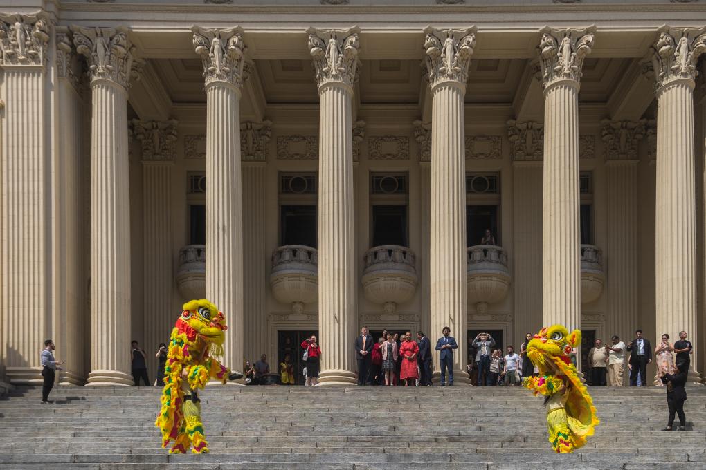 2月6日,中國農(nóng)歷正月初九,巴西里約熱內(nèi)盧州蒂拉登特斯宮(州議會(huì))大門外,里約州議會(huì)副議長蒂婭·茹和中國駐里約熱內(nèi)盧總領(lǐng)事田敏用手中的毛筆共同為兩只舞獅點(diǎn)睛。瞬間,“獅子”舞動(dòng)起來,里約州議會(huì)中國農(nóng)歷新年慶典拉開帷幕。