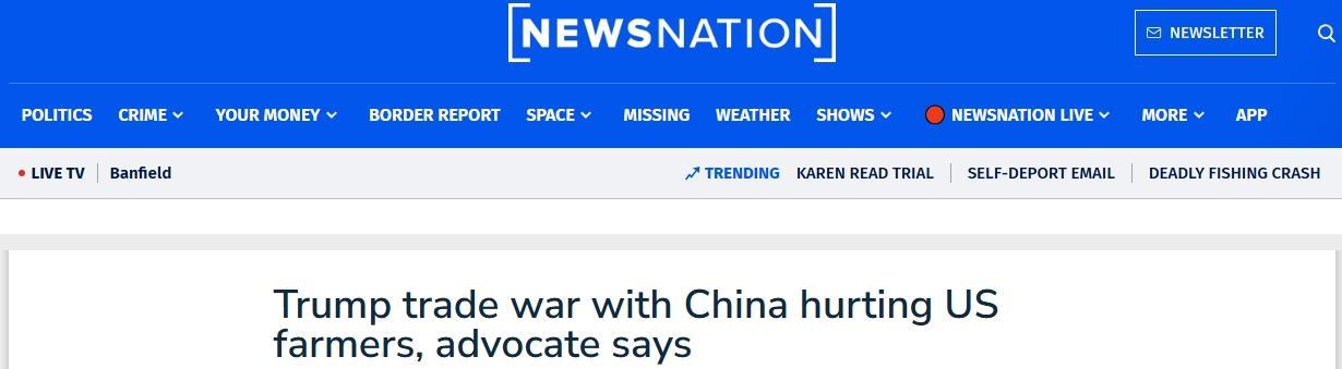 △美國(guó)媒體援引美國(guó)農(nóng)民工會(huì)主席的評(píng)論:特朗普發(fā)起對(duì)中國(guó)的貿(mào)易戰(zhàn)傷害了美國(guó)農(nóng)民