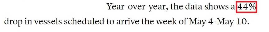 美國消費者新聞與商業(yè)頻道網(wǎng)站:長灘港首席執(zhí)行官科爾德羅預(yù)計,5月4日至5月10日期間,到港貨船數(shù)量與去年同期相比將下降44%。