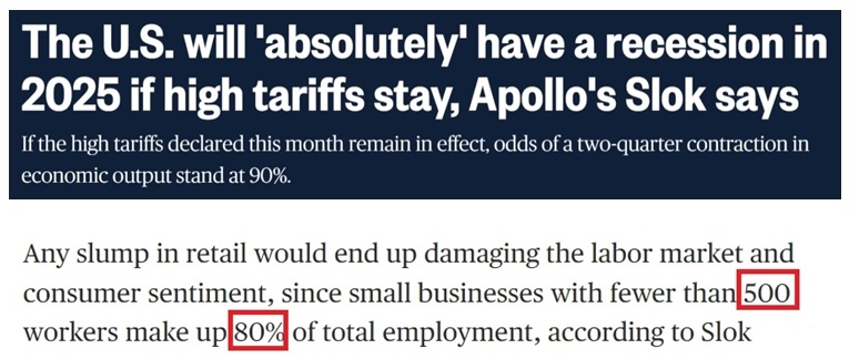 他還警告,如果高關(guān)稅持續(xù)下去,美國經(jīng)濟連續(xù)兩個季度萎縮的可能性將高達90%,今年年內(nèi)“絕對”會陷入衰退。