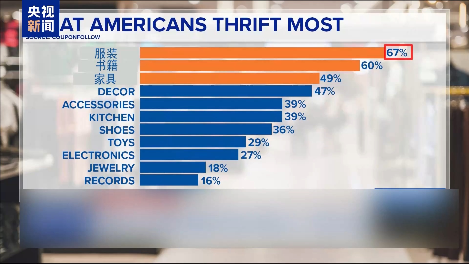 美國(guó)一家在線交易平臺(tái)(CouponFollow)的一組調(diào)查數(shù)據(jù)顯示,67%的美國(guó)消費(fèi)者選擇在二手市場(chǎng)購(gòu)買(mǎi)服裝,60%的人購(gòu)買(mǎi)書(shū)籍,近50%的人購(gòu)買(mǎi)家具。