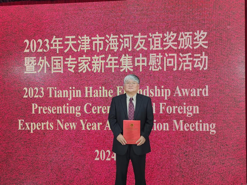 南開大學(xué)商學(xué)院韓籍教授申光龍參加2023年天津市海河友誼獎(jiǎng)?lì)C獎(jiǎng)暨外國專家新年集中慰問活動(dòng)(資料照片)。新華社發(fā) 受訪者供圖