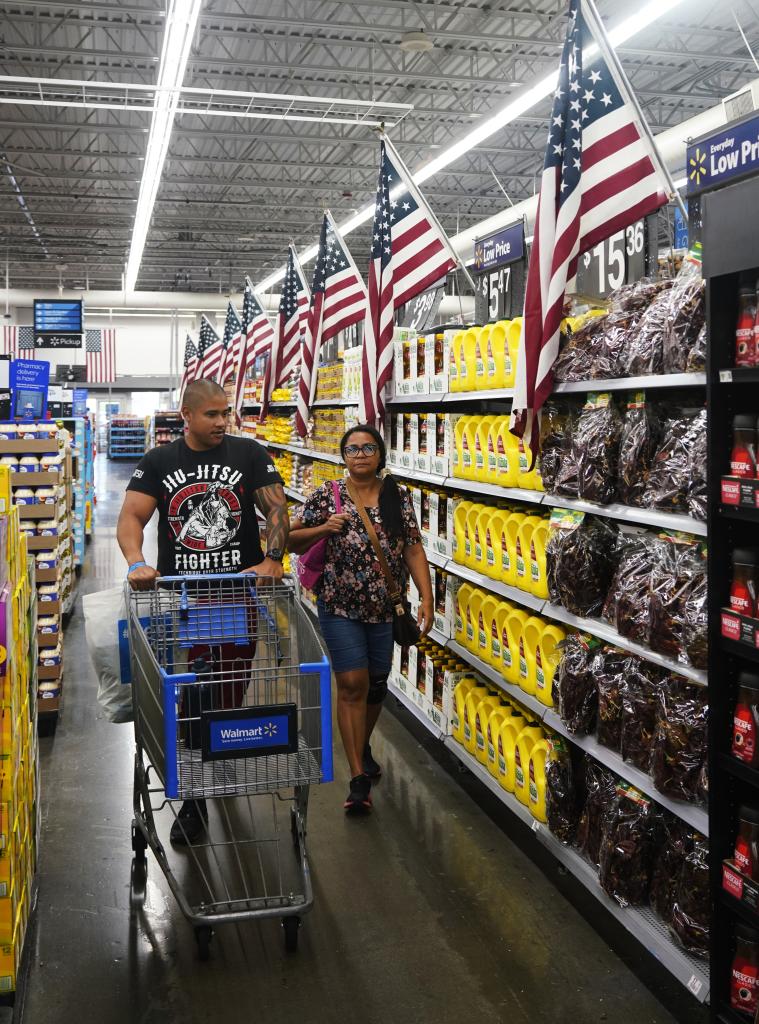 5月20日,顧客在美國(guó)加利福尼亞州洛杉磯縣一家沃爾瑪商店內(nèi)采購(gòu)商品。新華社發(fā)(邱晨攝)