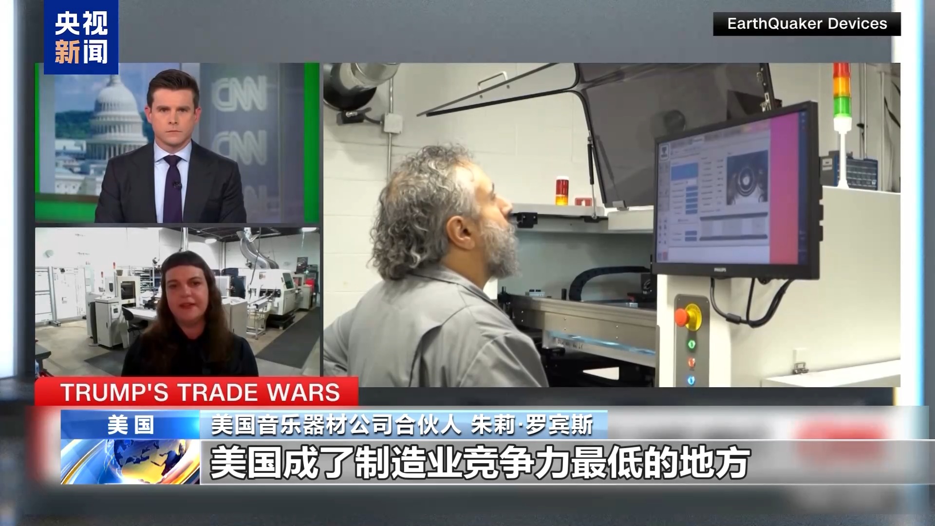 美國音樂器材公司合伙人 朱莉·羅賓斯:海外的競爭對手無需面對這些困境,無需支付更多的關(guān)稅。相比之下,美國成了制造業(yè)競爭力最低的地方。