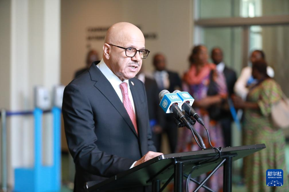 6月3日,在位于紐約的聯(lián)合國(guó)總部,巴林外交大臣扎耶尼在巴林當(dāng)選聯(lián)合國(guó)安理會(huì)非常任理事國(guó)后講話。新華社記者 謝鍔 攝