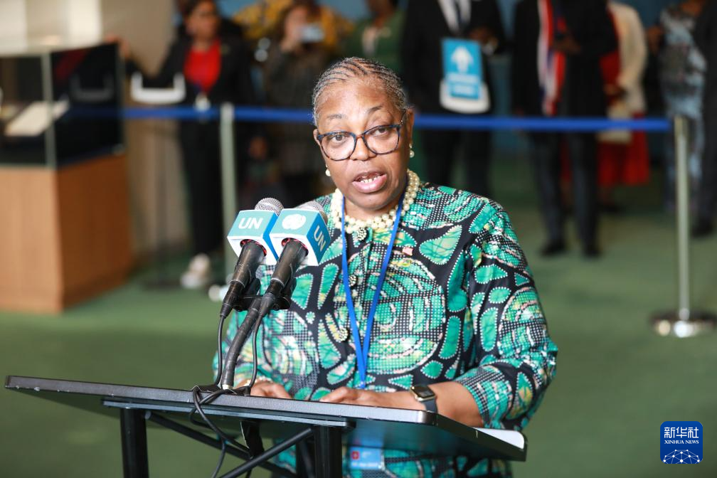 6月3日,在位于紐約的聯(lián)合國(guó)總部,剛果(金)外長(zhǎng)泰蕾茲·卡伊寬巴·瓦格納在剛果(金)當(dāng)選聯(lián)合國(guó)安理會(huì)非常任理事國(guó)后講話。新華社記者 謝鍔 攝
