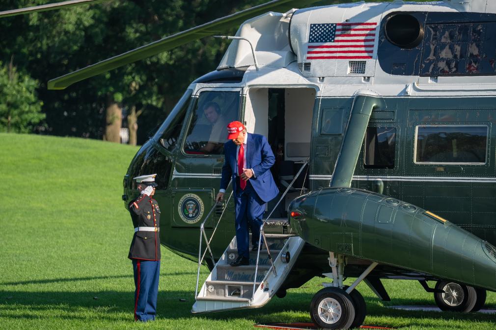 6月21日,美國(guó)總統(tǒng)特朗普返回華盛頓白宮。新華社記者 胡友松 攝