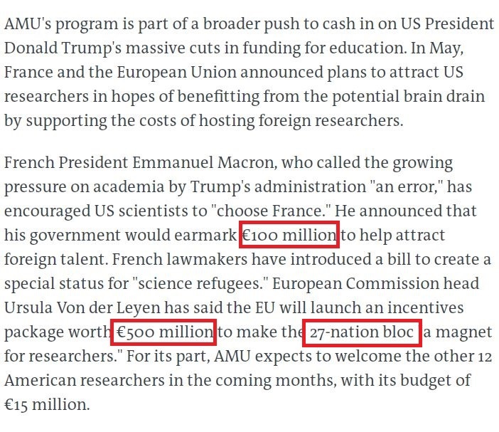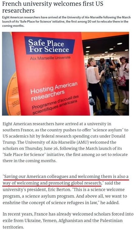 用艾克斯-馬賽大學(xué)校長埃里克·伯頓的話說,“拯救并歡迎我們的美國同事也是促進全球科研事業(yè)的一種方式”。