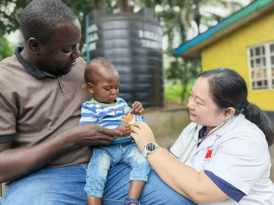 中國援助塞拉利昂醫(yī)療隊專家為當地兒童看診