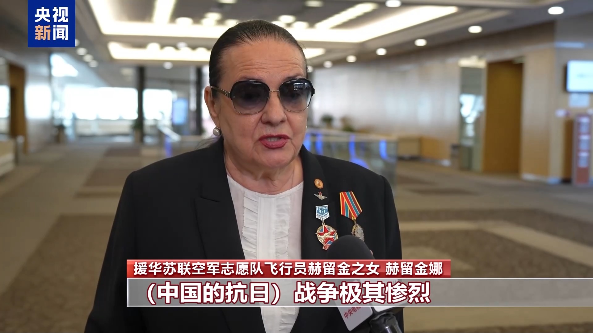 援華蘇聯(lián)空軍志愿隊飛行員赫留金之女 赫留金娜:中國的抗日戰(zhàn)爭極其慘烈,很多村莊、城市等都被摧毀殆盡,中國人民遭受了慘重損失,最終日本的侵略被擊退。二戰(zhàn)期間,中國為結(jié)束這場戰(zhàn)爭作出巨大貢獻。