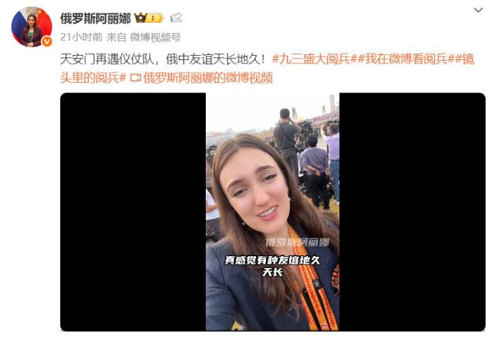 十年后,阿麗娜終于圓夢,來到了北京。九三閱兵當天,阿麗娜在社交媒體上接連發(fā)布多條帖文,并用中文表達了自己的開心,“中國軍人太帥了”“俄中友誼天長地久”!
