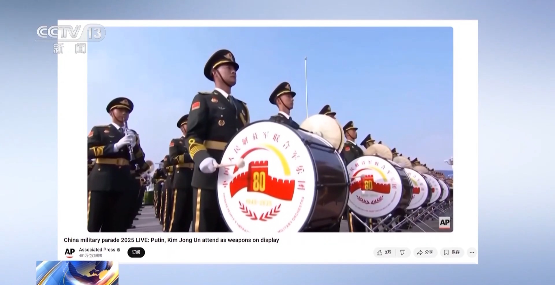 美國(guó)有線電視新聞網(wǎng)(CNN)通過現(xiàn)場(chǎng)記者和總臺(tái)的直播信號(hào)幾乎全程關(guān)注了抗戰(zhàn)勝利80周年紀(jì)念大會(huì)。美國(guó)廣播公司(ABC)、美國(guó)全國(guó)廣播公司(NBC)、美聯(lián)社等多家媒體和通訊社也對(duì)此進(jìn)行了轉(zhuǎn)播和報(bào)道。