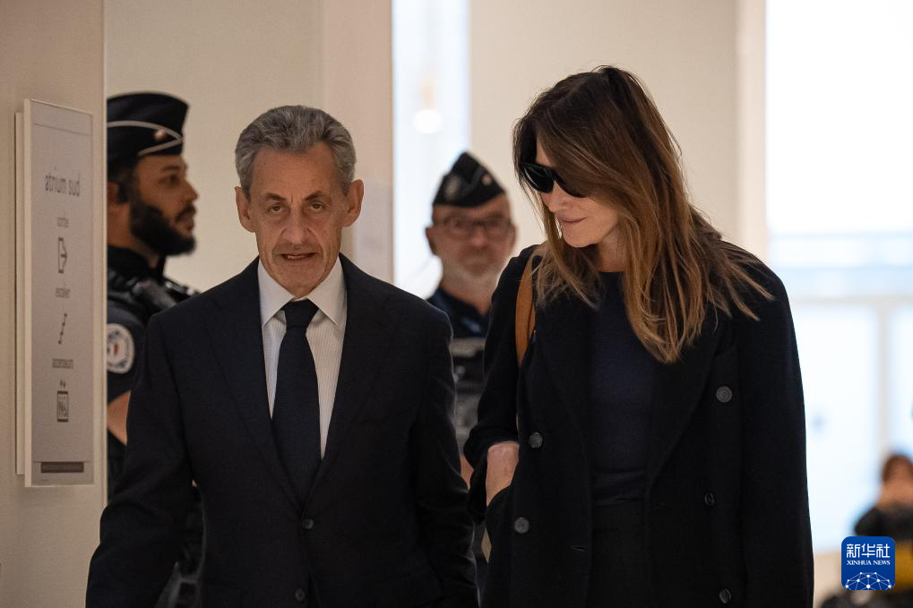 9月25日,法國前總統(tǒng)薩科齊和夫人布呂尼抵達(dá)巴黎一家法院。新華社發(fā)(奧雷利安·莫里薩爾攝)