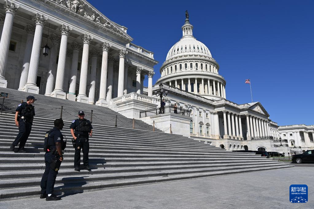10月1日,在美國首都華盛頓,警察在美國國會大廈前警戒。新華社記者 李睿 攝