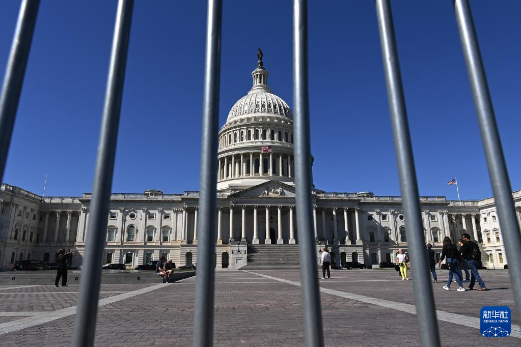 這是10月1日在美國首都華盛頓拍攝的美國國會大廈。新華社記者 李睿 攝
