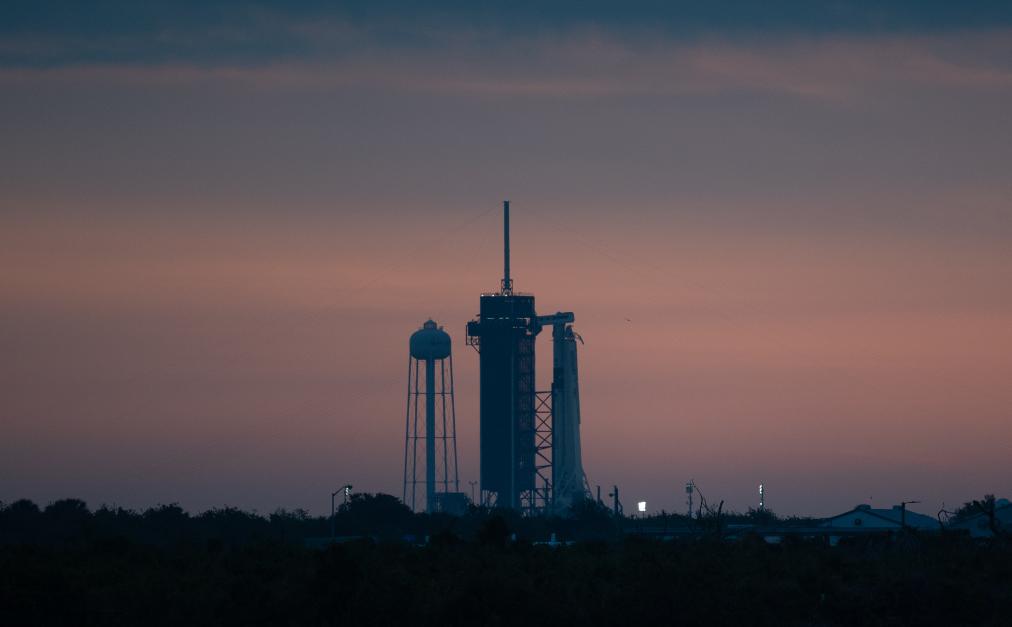 這是2020年5月27日在美國(guó)佛羅里達(dá)州肯尼迪航天中心拍攝的“獵鷹9”火箭和載人版“龍”飛船。新華社發(fā)(美國(guó)國(guó)家航空航天局供圖)