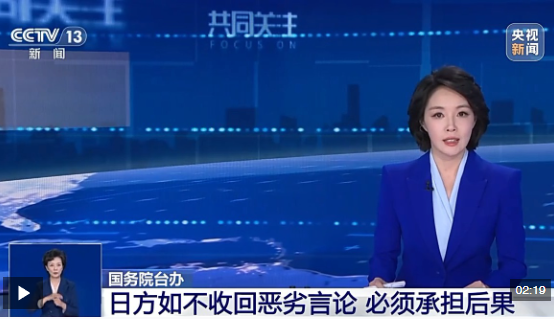 問:日本首相高市早苗日前發(fā)表若中國大陸對臺灣動武可能構(gòu)成日本“存亡危機(jī)事態(tài)”的言論,在中方嚴(yán)正交涉后仍妄稱其言論符合日本政府看法,無意撤回或取消。對此有何評論?