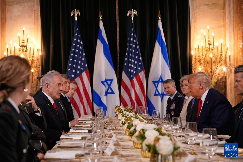 12月29日下午,美國(guó)總統(tǒng)特朗普在佛羅里達(dá)州海湖莊園會(huì)晤到訪的以色列總理內(nèi)塔尼亞胡。新華社/美聯(lián)