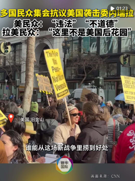 1月3日,美國多地及英國、巴西、古巴等多國爆發(fā)抗議集會,譴責美軍3日凌晨突襲委內(nèi)瑞拉并抓走委總統(tǒng)及其夫人。美國民眾譴責美國行為“非法”“不道德”。