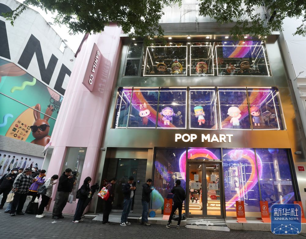 2025年5月20日,消費(fèi)者在韓國首爾明洞街區(qū)的泡泡瑪特店面前排隊。