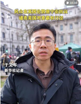 當(dāng)?shù)貢r(shí)間10日下午,大批民眾聚集在英國首相官邸唐寧街10號(hào)門外,抗議美國對(duì)委內(nèi)瑞拉的軍事打擊。這是自美國襲擊委內(nèi)瑞拉并強(qiáng)行帶走馬杜羅夫婦后,倫敦發(fā)生的第四次相關(guān)的抗議事件。