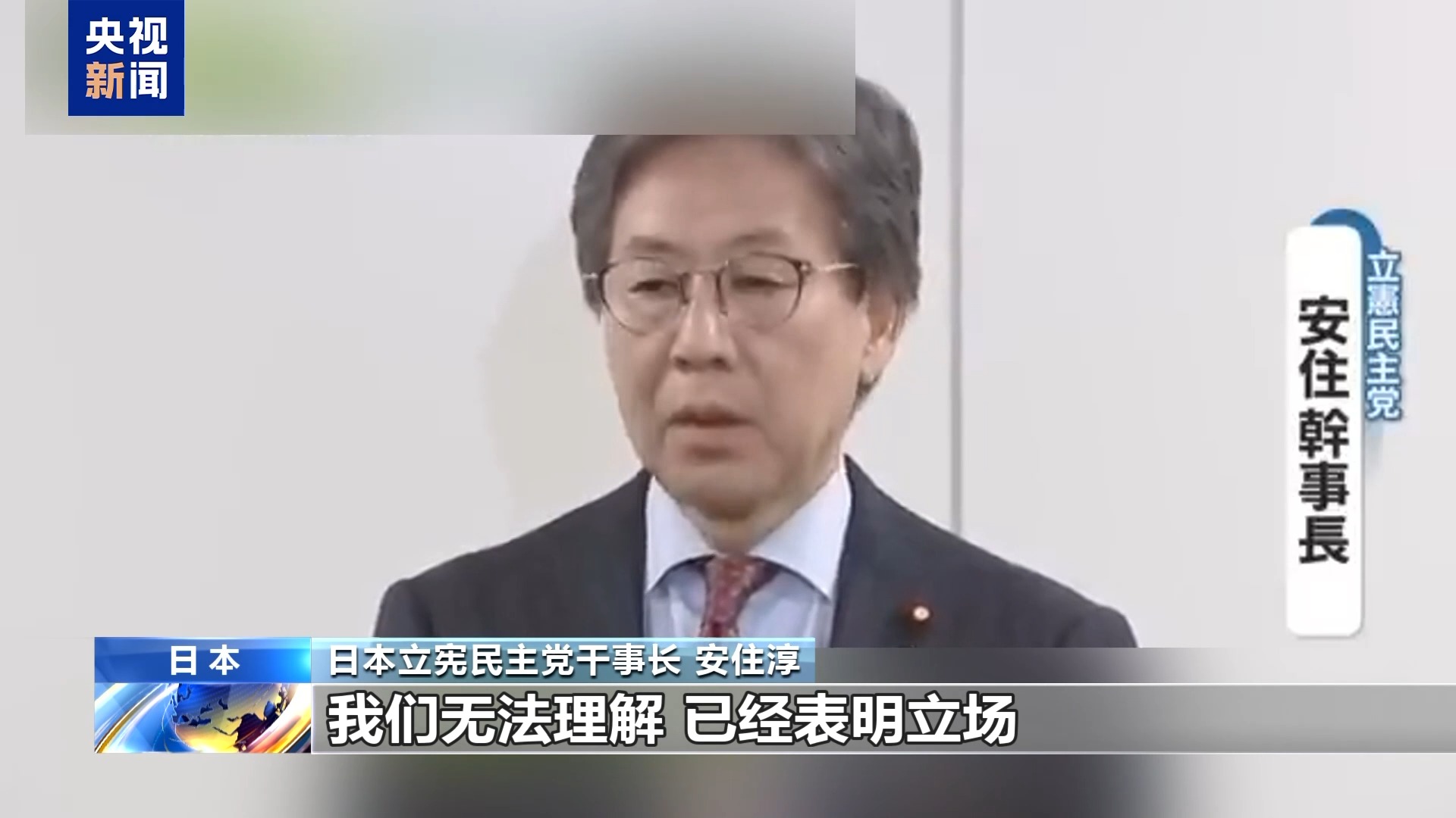 日本立憲民主黨干事長(zhǎng) 安住淳:我們無(wú)法理解,已經(jīng)表明立場(chǎng)。坦白說(shuō),這是一次毫無(wú)道理的解散。