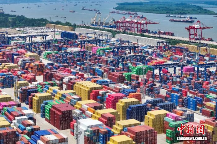 2025年7月14日,航拍長江沿線南京龍?zhí)陡圻M出口集裝箱碼頭。(資料圖) 中新社記者 泱波 攝